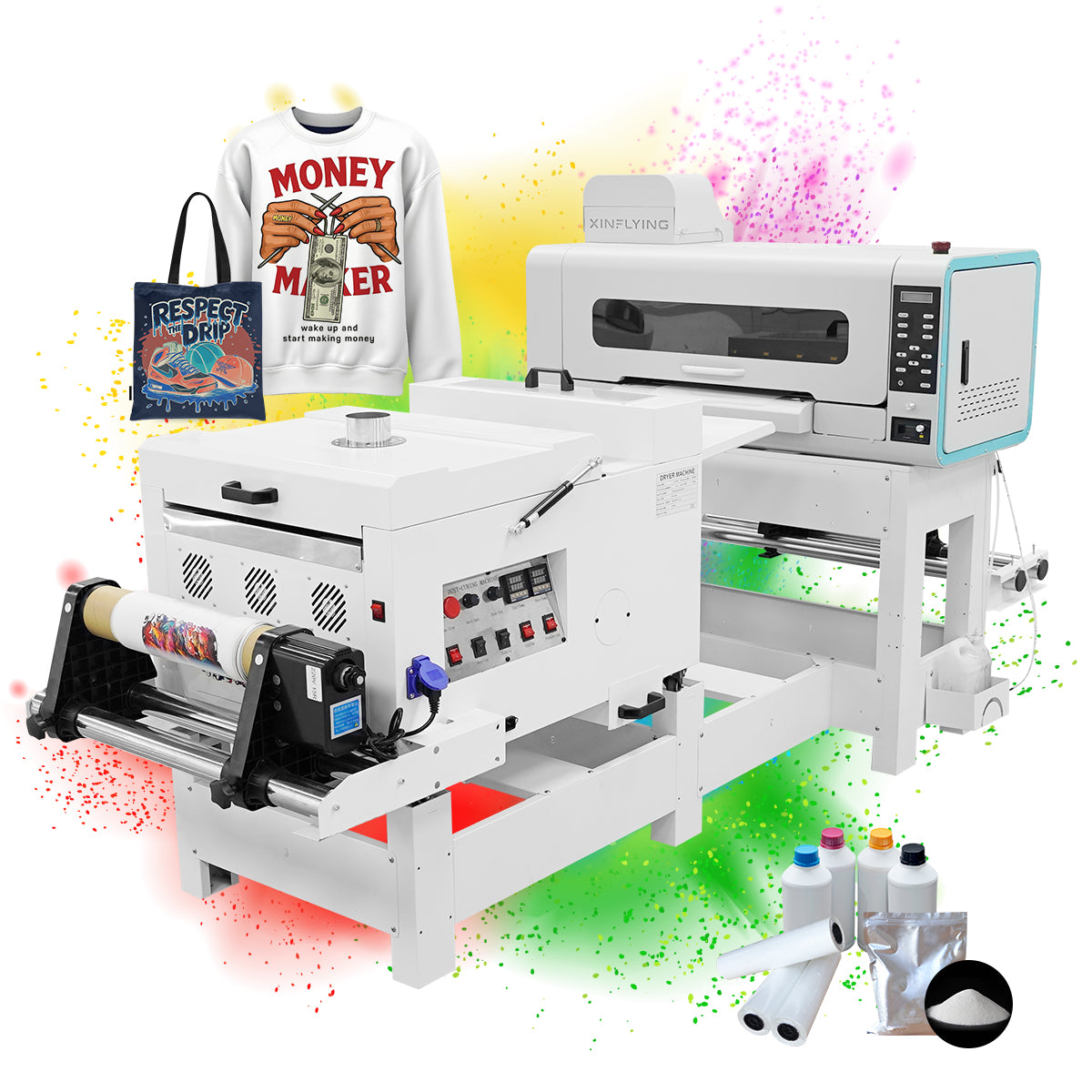 A: Yes. It can be paired with a matching powder shaker to form a complete DTF printing line.